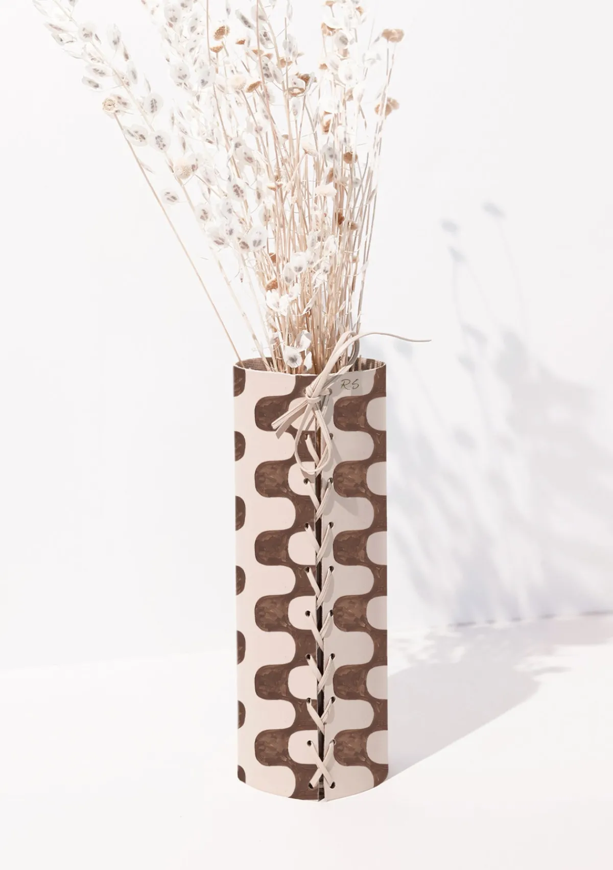 – Leather wrap with glass vase insert.